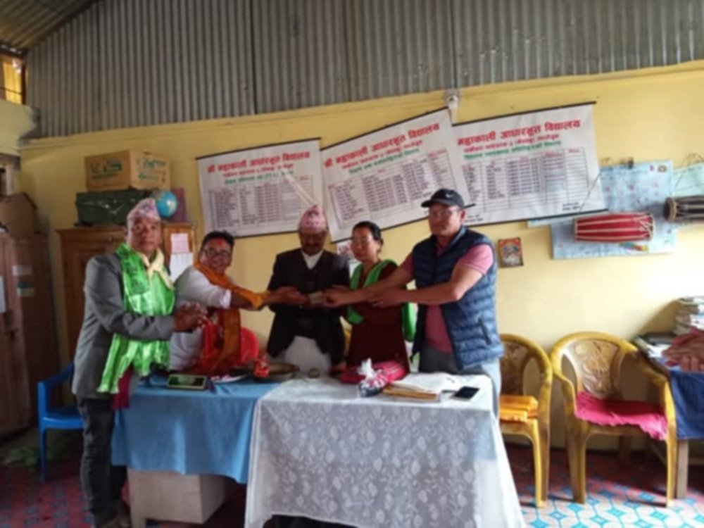 मुलत: उक्त विद्यालयका विद्यार्थीहरु लाई उत्साह मिलोस् भन्ने उदेश्य लिएर पठाईएको १लाख एक हजार १ सय एक रुपैया झापा केर्खा निवासी दाता लक्ष्मीका कान्छा भाई विजेन्द्र मेन्याङ्बो र सामाजिक व्यक्तित्व विरेन्द्र याक्थुम्वा(सुवास)अक्षयकोष सम्झौता अनुरुप हस्तान्तरण गर्न पुग्दा श्री महाकाली आधारभुत बिद्यालय व्यवस्थापन समिति र शिक्षकहरुले गत चैत २२ गते श्री महाकाली आधारभुत विद्यालयको सभाहलमा वि. व स अध्यक्ष टिकाराम पौडेलको सभा अध्यक्षतामा एक औपचारिक कार्यक्रम गरि भव्य स्वागत तथा सम्मान गरिएको थियो।