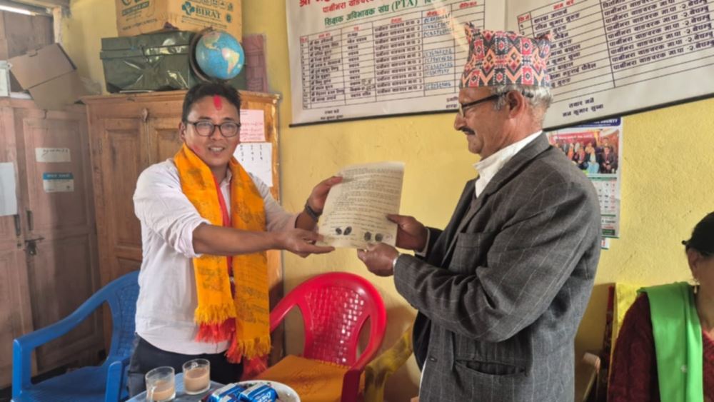 जसले आफ्नो पुर्खौली गाउँ पाथिभरा याङ्वरक गाउंपालिका वार्ड न २ स्थित आहाल डाँडा, पिङ्गेदिनमा आफ्नो पुर्खौली गाउँ छुट्टी मनाउन आउँदा सो विधालयमा भ्रमण गरेकी थिईन ।