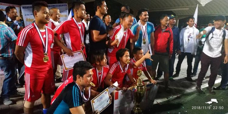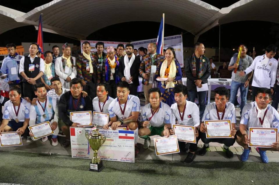 मैत्रीपुर्ण फुटबल प्रतियोगिताको फाईनल तथा पुरुस्कार बितरण समारोह नेपालीहरुको दोश्रो महानपर्ब दिपावलीको देउसी भैलो लगाएत विभिन्न नृत्य र गायनका साथ भएको सास्कृतिक कार्यक्रम दीप प्रज्वलन तथा उपस्थित बिशिस्ट ब्यक्तिहरुबाट ब्यानर उद्घाटन र सामुहिक रुपमा राष्ट्रिय गान गाएर शुरु भएको थियो।