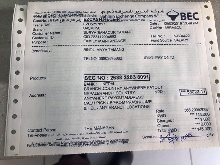 माया मोक्तान काठमाडौ ५ के डी, इमान तामाङ धादिङ २.५०० फिल्स, मानसिङ तामाङ धादिङ १ के डी, पुडक घले धादिङ २ के डी, कुल बहादुर तामाङ धादिङ ३ के डी, चो माया तामाङ धादिङ २ के डी, मोटु माया तामाङ धादिङ २ के डी, सर्ची माया तामाङ धादिङ ५ के डी, सीता माया धादिङ २ के डी, रिता माया धादिङ २.२५० फिल्स, निमा घले रसुवा ५ के डी, मेङ्गी तामाङ रसुवा १ के डी, दावा दोङ्बा रसुवा १ के डी, गरि जम्मा १४४.७५० फिल्स कुवेती डिनार आर्थिक संकलन गरि नेपाली ५३०२२ रुपैयाँ आर्थिक सहयोग स्वरुप हस्तान्तरण गर्नु भएको छ