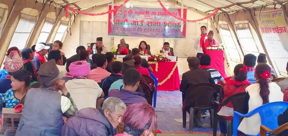 गाउपालिका उपाध्यक्ष बिना लामाले आर्थिक वर्षको नीति तथा कार्यक्रम सहित बजेट प्रस्तुत गरेकी हुन्।रुबिभ्याली गाउँसभाले आर्थिक विकासतर्फ ६ करोड ५१ लाख,१२ हजार कुल बजेटको २३.२३%, पूर्वाधार विकासतर्फ १४ करोड १० लाख १६ हजार ५०.२७% र सुशासन तथा अन्तर सम्बन्धित क्षेत्रतर्फ ७ करोड ४३ लाख ४३ हजार २६.५०% बिनियोजन गरिएको गाउँपालिका उपाध्यक्ष बिना लामाले बताए ।