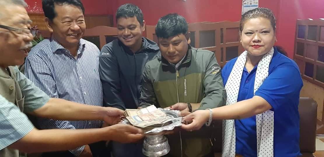 उक्त संकलित रकमलाई तमु प्ये ल्हु संघ काठमाण्डाैका अध्यक्ष तथा पूर्व आइ जी पी हेम बहादुर त्होर्जे तमु को संयोजकत्वमा , तमु प्ये ल्हु संघ कतार साखाका नेपालमा बिदामा रहनु भएका संघका सास्कृतिक संयोजक शिबराज च्हाक्ली तमु , महिला सदस्य सानू क्रोम्छे तमु र कास्की आदर्श सेवा समाज कतारका प्रतिनिधित्व गर्नु हुने भिम गिरि तथा तनहु छिम्केस्वरी तमु समाजका अध्यक्ष एबं दृतिय उपाध्यक्ष TPLS Ktm का पुर्ब लप्टन कर्नेल अन्त सिङ पह्च्यु तमु लगाएत प्ये ल्हु संघ काठमाण्डाैका पदाधिकारिहरु क्रमश: महासचिब लोक ब. क्रोम्छे तमु , प्रचार प्रसार सचिब लाल ब ल्हो तमु , र कोषाध्यक्ष शिरी प्रसाद च्हाक्ली तमुहरुको उपस्थितिमा संयुक्त रोहवरमा रकम हस्तान्तरण गरिएको थियो।