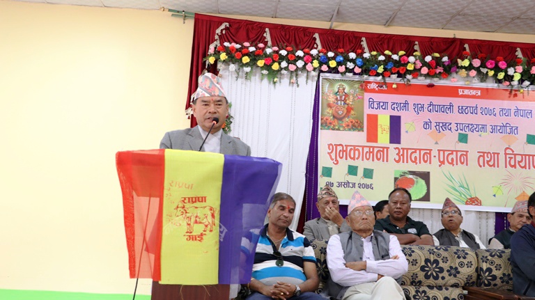 कार्यक्रमका प्रमुख अतिथी तथा राप्रपा केन्द्रिय अध्यक्ष कमल थापाले पछिल्लो समय पार्टीका विभिन्न गतिबिधी लगाएत नेपालको राजनितिमा भएका उतारचढाव, आरोपप्रत्यारोप, सरकारले गरेका विभिन्न कार्यहरु जनताप्रतिको उत्तरदायित्व जस्ता कुराहरुलाई अबगत गराउदै आउदै गरेको बडा दशै तथा दिपावलीको सुखद उपलक्ष्यमा सम्पुर्ण नेपालीहरुलाई शुभकामना ब्यक्त गरेका थिए।स्वागत मन्तव्य भने प्रदेश न ३ महिला प्रमुख नानु नगरकोटी लामाले गरेकी थिईन।