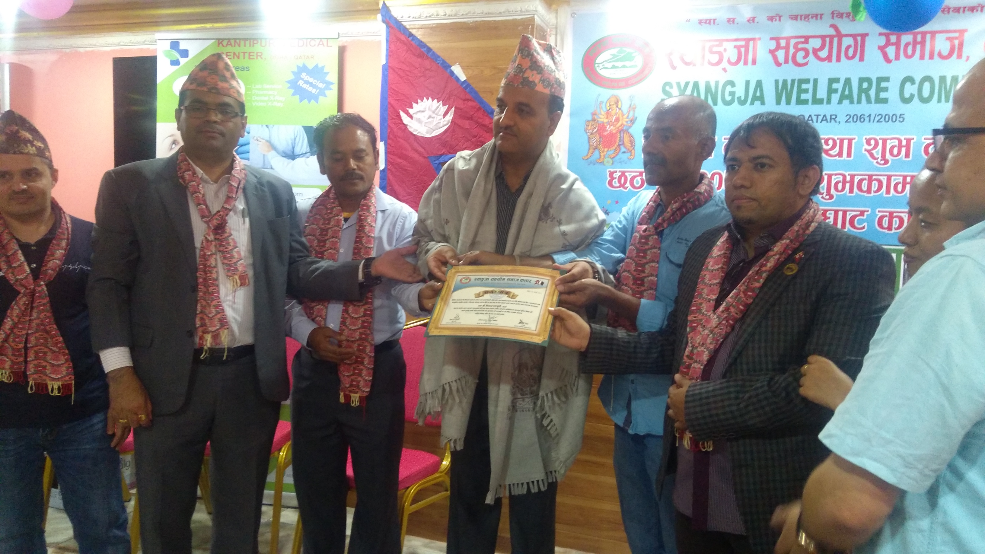 स्याङ्जा सहयोग समाज कतारको आयोजनामा सुभकामनाको एवं भेटघाट कार्यक्रम सम्पन्न भएको छ ।