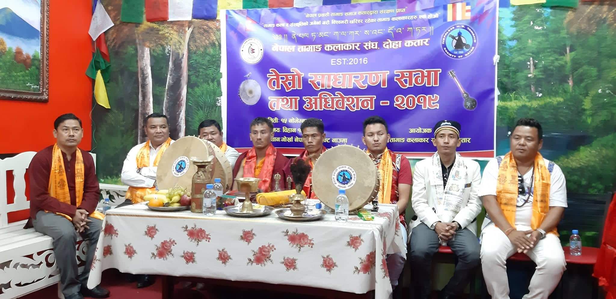 “तामाङ कला र सस्कृतिको जगेर्ना गरौ बिस्वभरि छरिएर रहेका तामाङ कलाकार एक हौ “ भन्ने मूल नाराका साथ सन : २०१६ मा स्थापित तथा नेपाल प्रबासी तामाङ समाज कतार द्धारा संरक्षण प्राप्त नेपाल तामाङ कलाकार संघ दोहा कतारको तेस्रो साधारण सभा अधिबेशन हिजो नोभेम्बर १५ तारीख शुक्रबारका दिन कतारको नज्मा स्थित गोर्खा नेपाली रेस्टुरेन्टको सभाहलमा सम्पन्न भएको छ ।