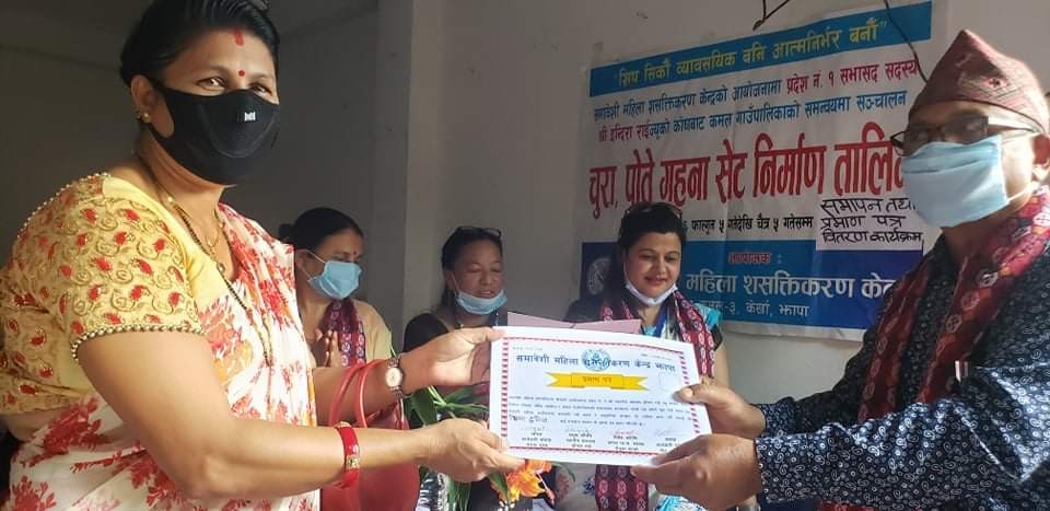 प्रदेश नं १ झापा निर्वाचन क्षेत्र ५(ख)अन्तगर्त प्रदेश माननीय सांसद इन्दिरा राईको सांसद विकास कोषको आर्थिक सहयोग र कमल गाउँपालिका झापाको संयुक्त आयोजनामा संचालित ३ महिने निशुल्क गरगहना तालिम कार्यक्रम सम्पन्न भएको छ।