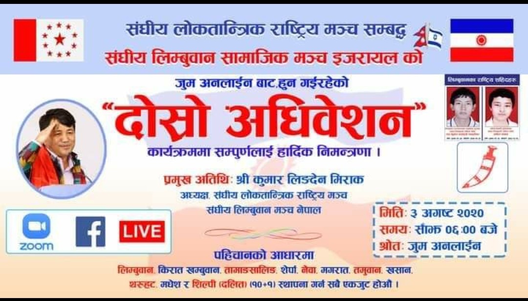 संघीय लोकतान्त्रिक राष्ट्रिय मञ्च (सलिराम), लिम्वुवान मञ्च नेपाल अन्तरगतको प्रवास समिती "संघीय लिम्बुवान सामाजिक मञ्च" (सलिसाम) इजरायल को दोश्रो ऎतिहासिक अधिवेशन सम्पन्न भएको छ।