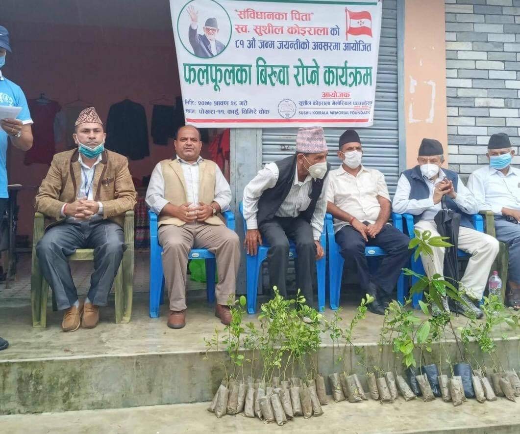 पोखरा, २८ साउन - समृद्धिको अभियान सहित नेपाली कांग्रेसका पूर्व सभापती स्वर्गिय शुसिल कोईरालाको ८१ औं जन्मजयन्ती पोखरामा मनाईएको छ । शुसिल कोईराला मेमोरियल फाउण्डेशनको आयोजना एवं नेपाली कांग्रेस वडा नं ११ को व्यवस्थापनमा सम्पन्न सो कार्यक्रममा जनतालाई समृद्धि सँग जोडने अभियान सहित फलफुलका बिरुवा रोप्ने कार्यक्रम सम्पन्न गरिएको हो ।