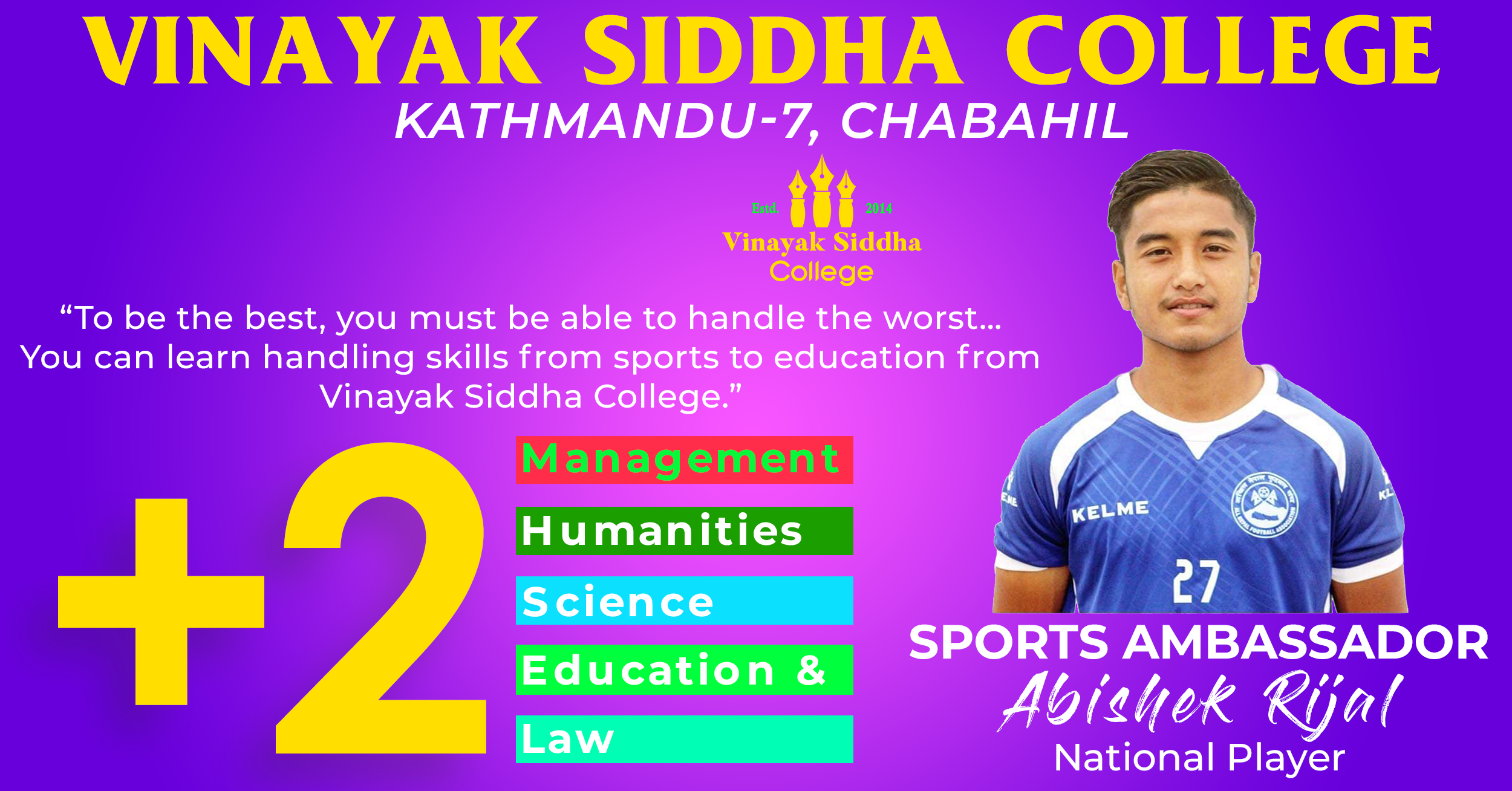 विनायक सिद्ध कलेजले फुटबलर अविषेक रिजाललाई आफ्नो विद्यार्थीसँगै Sports Brand Ambassador को रुपमा पनि भित्र्याएको छ । त्यससँगै फुटबल खेलाडीहरु नेपाल पुलिस क्लबका कप्तान तथा मिड फिल्डर हेम तामाङ, एन. आर. टि. का कप्तान विक्रम धिमाल, मछिन्द्र क्लबका रेजिन सुब्बा, पुलिस क्लबका रोशन खड्का, मानबहादुर तामाङ सँगै युवराज राईले पनि विनायक सिद्ध कलेज नै रोजेका छन् ।
