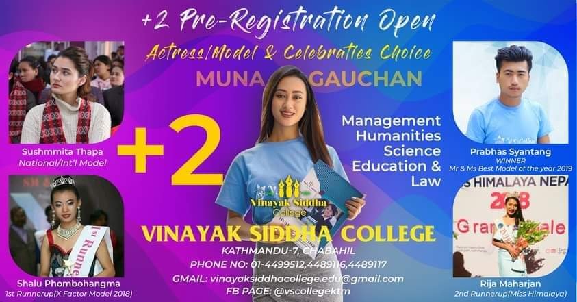 विद्यार्थीहरुको Extra Curricular Activities अन्तर्गत आगामी कार्यक्रम यहि मिति २०७७ कार्तिक २८ गते शुक्रबार विभिन्न ६ विधामा विद्यार्थीहरुलाई प्रशिक्षण गर्ने कार्यक्रम रहेको छ । उक्त कार्यक्रममा Vocal, Guitar, Video Editing, Graphic Designing, English Language & R.J-V.J Training दिने कार्यक्रम रहेको विनायक सिद्ध कलेज प्रशासनले जनाएको छ ।