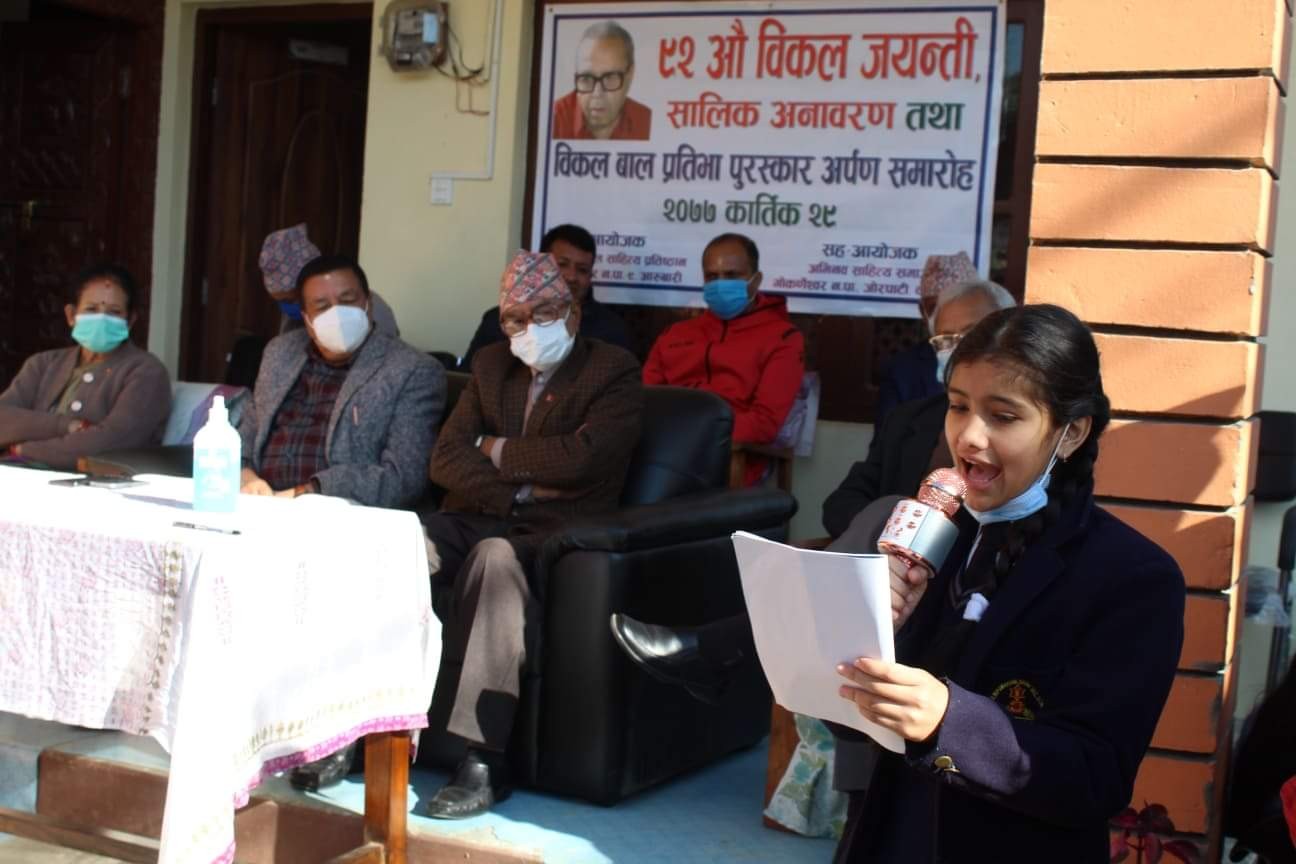 रमेश विकल साहित्य प्रतिष्ठानका अध्यक्ष तथा वरिष्ठ साहित्यकार रोचक घिमिरेको सभापतित्वमा भएको कार्यक्रममाप्रतिष्ठानका उपाध्यक्ष के.के कर्माचार्य, स्रष्टाहरु डाक्टर विदुर चालिसे,शान्ति रिसाल, महेन्द्र चालिसे, विमल अर्याल लगायतले नेपालीसाहित्यमा विकलको योगदानका बारेमा चर्चा गरेका थिए । प्रतिष्ठानका महासचिव विजय चालिसेले साहित्य सँगै संगीत, चित्रकला तथा समाजसेवामा स्थापित रमेश विकलको स्मृतिलाई चीरस्थायी बनाउनप्रतिष्ठान स्थापना गरिएको बताएका थिए । सोही अवसरमा अभिनव साहित्य समाजले केही समय आयोजना गरेको विकल बाल प्रतिभा कविताप्रतियोगिताका विजयी विद्यार्थीहरुलाई पुरस्कृत गरिएको थियो ।