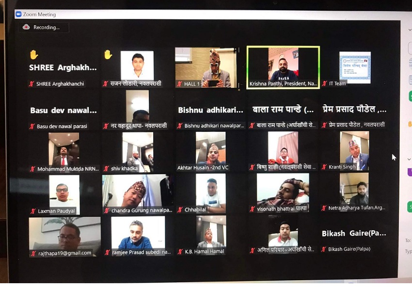 कोरोना महामारीले बिश्व आतंक बनाईरहेको र कतारमा रहेका नेपाली समुदायलाई पनि प्रत्यक्ष असर गरिरहेको बेला सजकता अपनाई प्रबिधिको सदुपयोग गर्दै जुम मिटिङ मार्फत संस्थाका प्रथम उपाध्यक्ष ठाकुर कुमार परियारले उपस्थिति सम्पुर्णलाई स्वागत मन्तव्य बाट स्वागत गर्नुभएको थियो ।