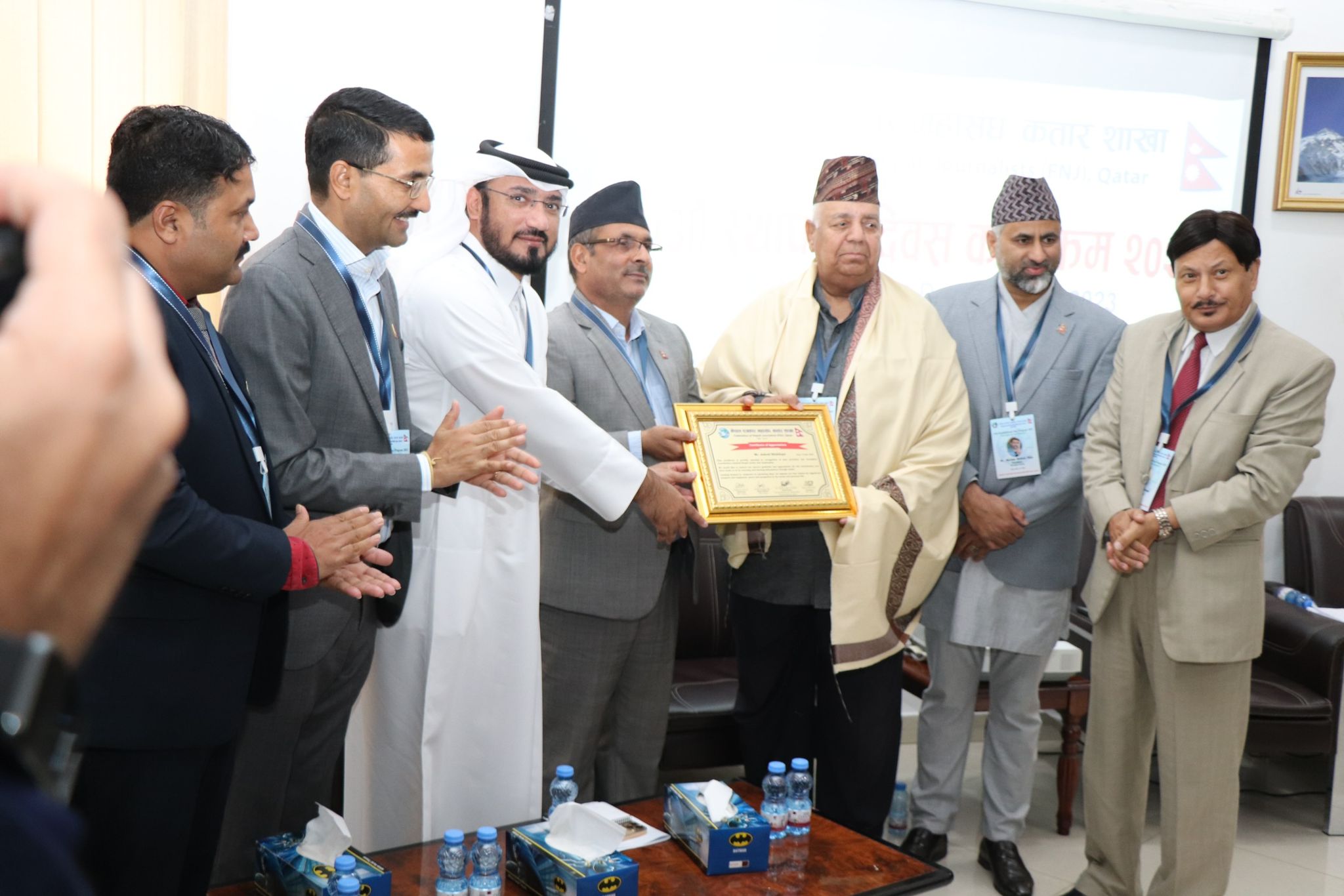 कार्यक्रममा नेपाली समुदाय बाट नेपाली व्यवसायी तथा अग्रज व्यक्तित्व डा.देव काजी डङ्गोल र अरेबियन गल्फ (penirsula ) का सिनियर पत्रकार Ashraf siddiqui लाई दोसल्ला ओढाएर सम्मान पत्रका साथ सम्मान गरिएको थियो । त्यसैगरि QN खबरका संचालक अनिल मगर र सारदा भुजेल लाई प्रोत्साहन पत्र प्रदान गरिएको थियो !