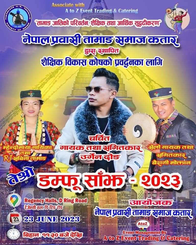 दोहामा बृहत "तेश्रो डम्फू साँझ-२०२३" कार्यक्रम हुने भएको छ ।