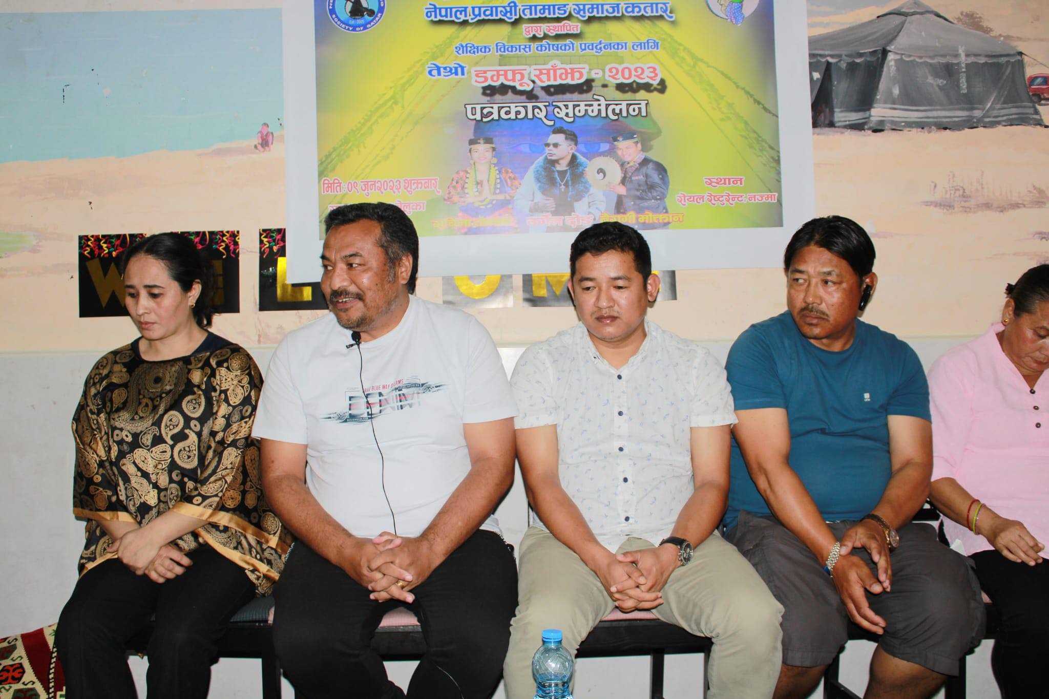 नेपाल प्रवासी तामाङ समाज कतारले गत शुक्रबार बिहान पत्रकार सम्मेलनको आयोजना गर्दै `डम्फू साँझ ´कार्यक्रम गर्नुको मुख्य उदेश्यको बारेमा प्रष्ट पार्दै,आउँदो जुन २०२३ शुक्रबार दिन रेजेन्सी हलको सभाहलमा भब्य कार्यक्रमको आयोजना गर्न गइरहेको जानकारी गराएको छ ।