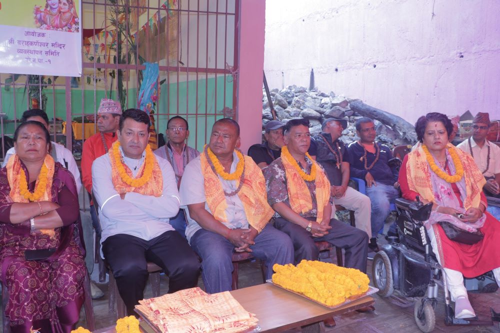 बराहकर्णेश्वर मन्दिर ब्यबस्थापन समितिका अध्यक्ष बालकृष्ण श्रेष्ठको सभा अध्यक्षता तथा नगर प्रमुख दिपक कुमार रिसालको प्रमुख आतिथ्यतामा भएको कार्यक्रमको विशेष अतिथी नगर उप प्रमुख सान्नानी लामा रहेकी थिइन।त्यसैगरि अन्य उपस्थितिहरूमा नगर प्रवक्ता तथा वडा नं ५ का वडा अध्यक्ष नारायण बहादुर सुवेदी, वडा नं १ वडा अध्यक्ष द्वारिका श्रेष्ठ, वडा नं ६ का वडा अध्यक्ष नवराज लामा, वडा सदस्य चन्द्रलाल श्रेष्ठ,समाजसेवी दुर्गा बराल, धार्मिक आस्थावान् व्यक्तित्वहरु लगायत स्थानीय दाजुभाई तथा दिदीबहिनीहरुको उल्लेखनीय उपस्थितीमा पूजा गरी मूर्तिहरूको औपचारिक उद्घाटन गरिएको हो।