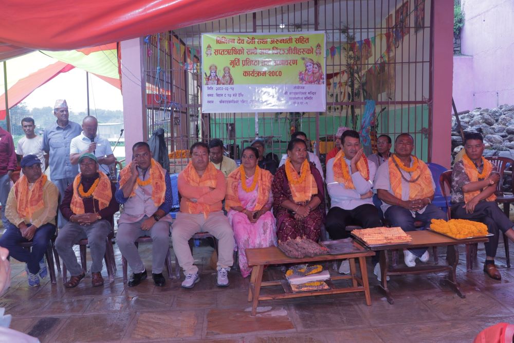 मुर्ति अनावरण कार्यक्रममा बोल्दै धार्मिक आस्थालाई पुस्ता हस्तान्तरण गर्न हाम्रो पुस्ताले गरेको योगदानलाई निरन्तरता दिदै आउँदो भाबी पुस्ताहरूको लागि हाम्रो धर्म संस्कार संस्कृति र विश्वासलाई संरक्षण र सम्बर्द्धन गर्न समितिले गरेको कार्यप्रति धन्यबाद ब्यक्त गर्दै आर्थिक सहयोग गर्ने प्रतिबद्धता संगै धार्मिक पर्यटकिय स्थलको निर्माण हओस भन्ने शुभकामना ब्यक्त गरेका थिए।त्यसैगरी वडा नं १ का वडा अध्यक्ष द्वारिका श्रेष्ठले वडा नं १ मा आर्थिक,सामाजिक,भौतिक,धार्मिक लगायतका बिकासका लागि आफ्नू निरन्तर लागिरहेको जनाउदै आफ्नो तर्फबाट सक्दो सहयोग गर्ने प्रतिबद्धता समेत जनाएका थिए।