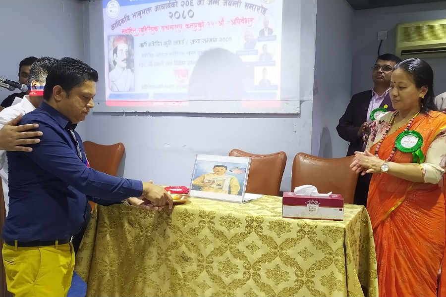 आदिकवि भानुभक्त आचार्यको २०९ औं जन्म जयन्तीको अवसरमा वहाँको फोटोमा माल्यार्पण गर्दै अगाडि बढेको कार्यक्रममा भानुभक्तको जिवनी बारे सानू थपलियाले पढेर सुनाएका थिए ।