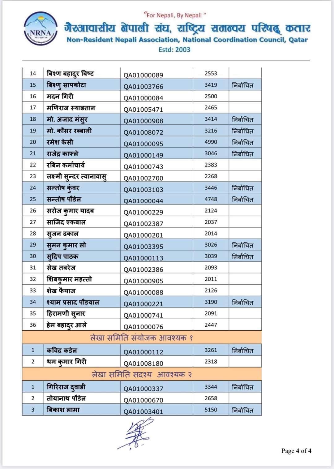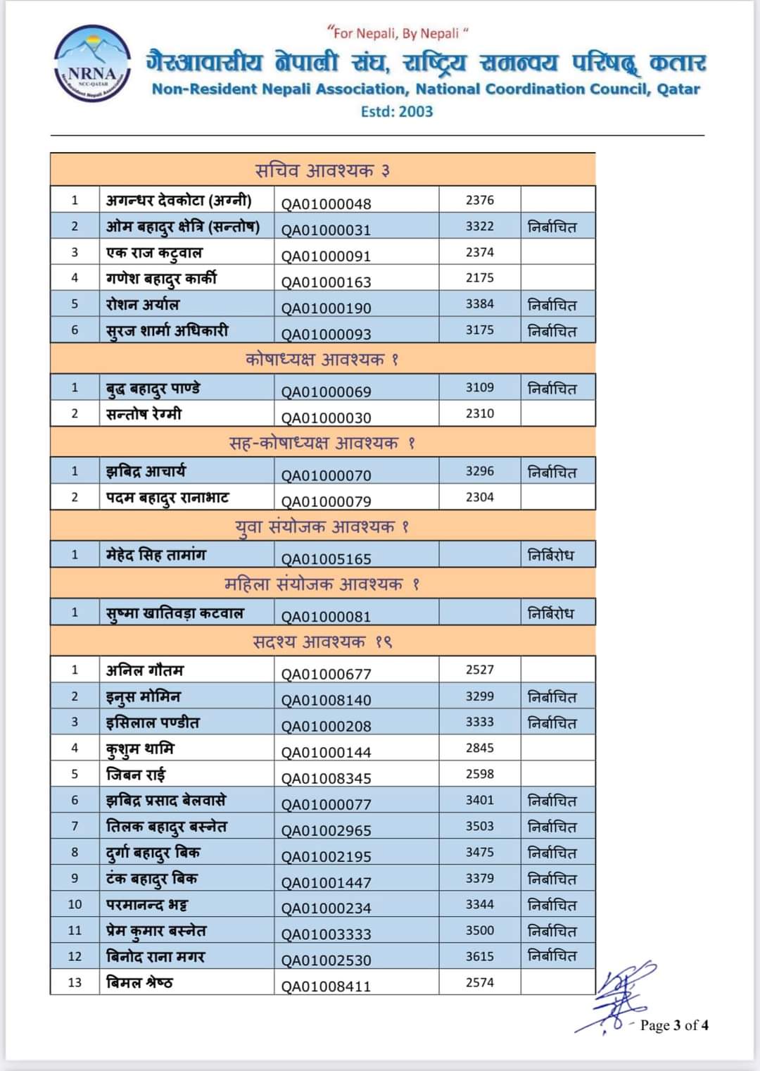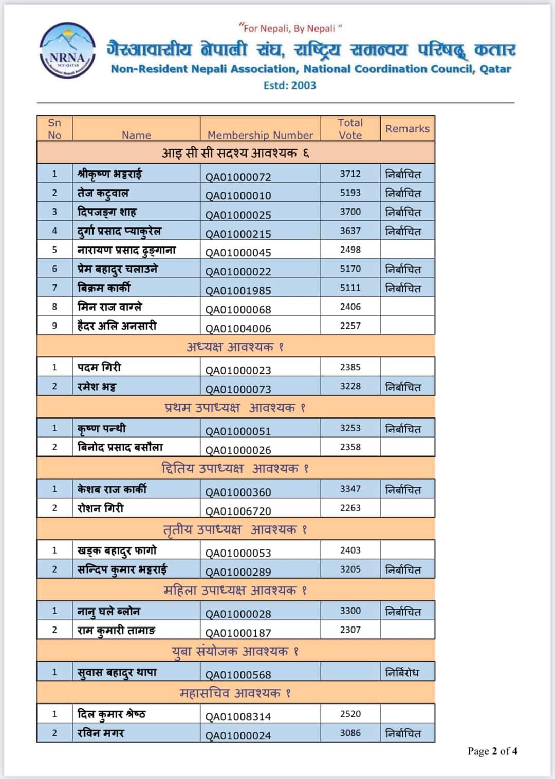 युवा उपाध्यक्ष सुबास बहादुर थापा, महिला सँयोजक शुष्मा खतिवडा कटुवाल तथा युवा सँयोजकमा महेन्द्र सिह तमाङ यसअघि नै निर्बिरोध निर्बाचित भएका थिए ।