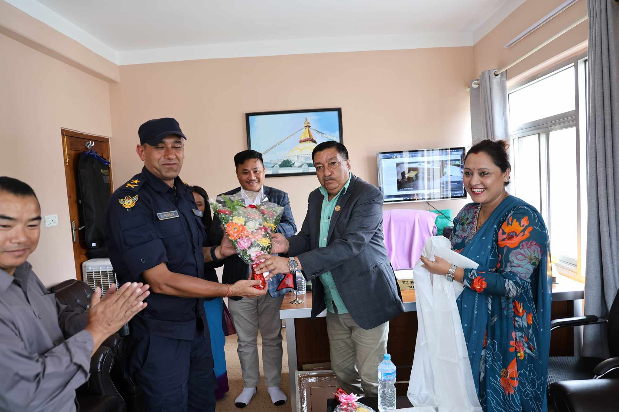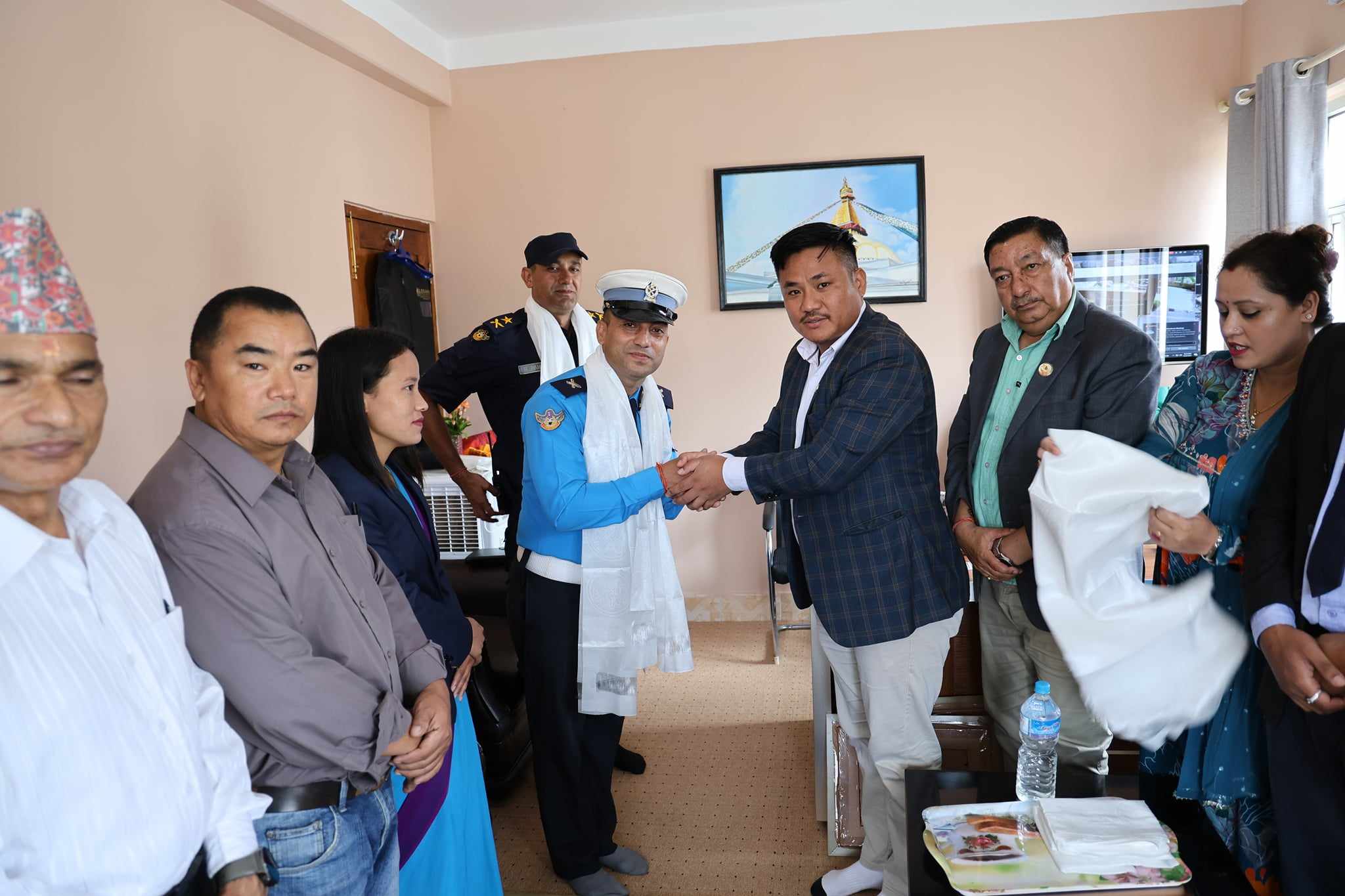 स्वागत तथा परिचयात्मक नाम दिइएको उक्त कार्यक्रममा भर्खरै सरुवा भएर बौद्ध आएका प्रहरी वृत बौद्धका कार्यालय प्रमुख प्रहरी नायब उपरीक्षक राजु पाण्डे र ट्राफिक प्रहरी वृत बौद्धका कार्यलय प्रमुख प्रहरी निरीक्षक लेखनाथ मैनालीलाइ खादा लगाएर स्वागत गरिएको थियो ।
