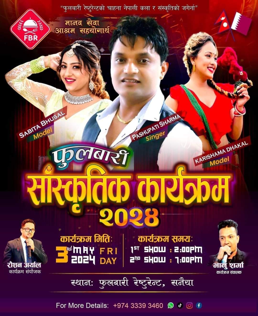 दोहा : नेपाली हरुको बाक्लो जनघनत्व रहेको सनैया मा अवस्थित चिरपरिचित नेपाली फुलबारि रेस्टुरेन्टको आयोजनामा बृहत साँस्कृतिक कार्यक्रम हुने भएको छ ।