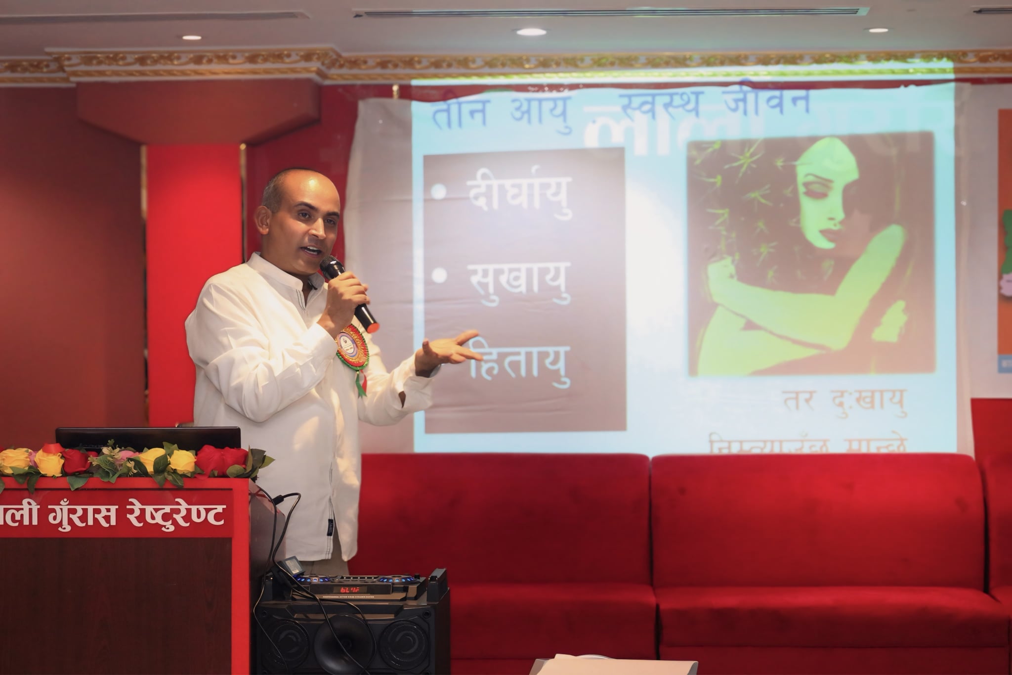 अधिकारीले अहिलेको अस्तब्यास्थ जिन्दगीमा खानपानले पनि विभिन्न दीर्घ रोगबाट पीडित भइ अकालमा ज्यानै गुमाउनु पर्ने अबस्था सिर्जना भएको हुँदा खान पान सङ्गै योग अति आवस्यक रहेको जानकारी गराउदै "योगका नियम,समय बिधि पद्धति तथा विभिन्न तरिकाबाट योगअभ्यास गराएका थिए ।