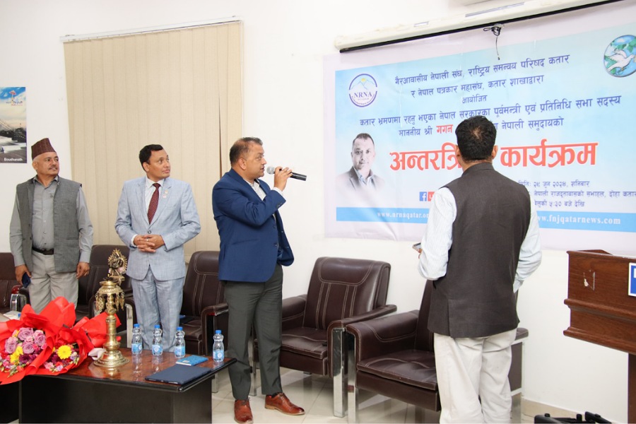 दोहा : गैरआवासीय नेपाली संघ, राष्ट्रिय समन्वय परिषद कतार र नेपाल पत्रकार महासंघ, कतार शाखाको संयुक्त आयोजनामा नेपाली राजदूतावासको सभाहलमा "अन्तरक्रीया कार्यक्रम " सम्पन्न भएको छ ।