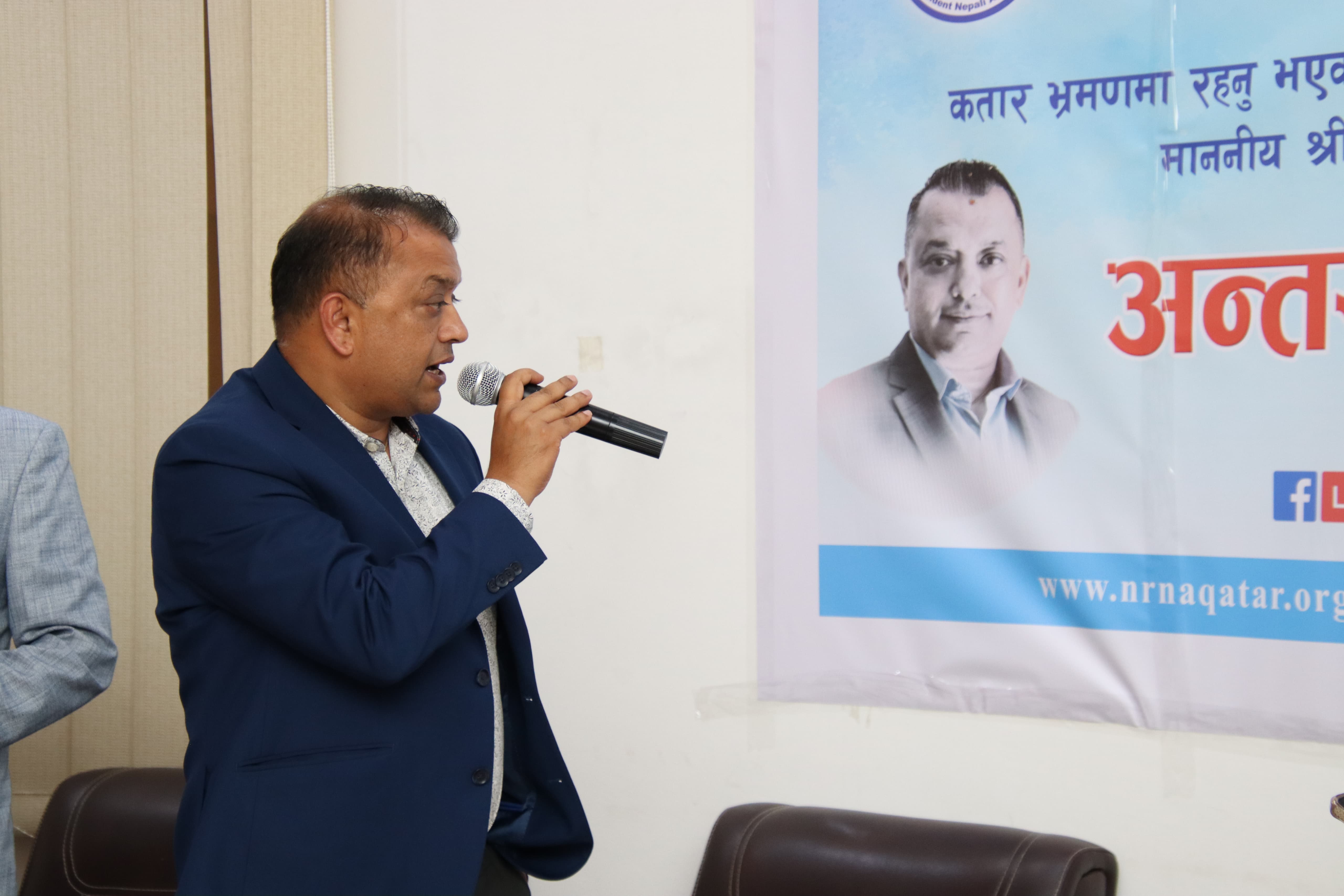 नेपाल पत्रकार महासंघ, कतार शाखाका अध्यक्ष दिल कुमार श्रेष्ठको स्वागत मन्तव्य, एनसिसि कतारका प्रथम उपाध्यक्ष कृष्ण पन्थीले कार्यक्रमको गर्नुको उदेश्य बारेमा प्रष्ट पारेका थिए भने गैरआवासीय नेपाली संघ, राष्ट्रिय समन्वय परिषद कतारका अध्यक्ष रमेश भट्टले कार्यक्रममा उपस्थिति सम्पुर्णमा धन्यवाद व्यक्त गर्दै औपचारिक कार्यक्रमको समापन गरेका थिए । कार्यक्रमको सहजीकरण पत्रकार महासंघ कतार शाखाका सचिव दिलिप पराजुलीले गरेका थिए।
