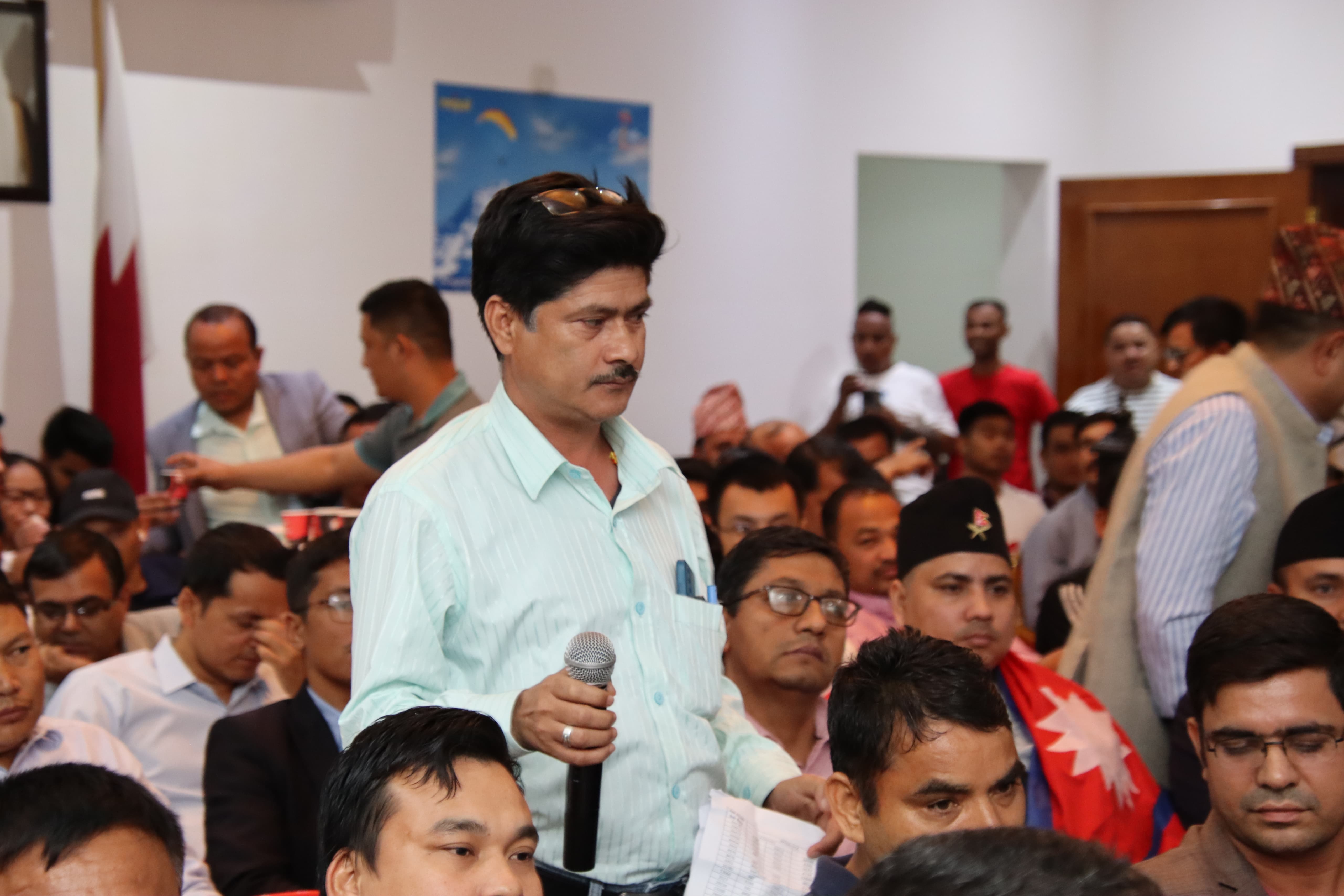 "भरीभराउ राजदूतावासको सभाहलमा करिव डेड दर्जन प्रश्नकर्ताले माननीय सांसद गगन थापा माथी सिधा प्रश्न गरे । उनिहरुले पासपोर्ट नविकरण समस्या ,आजाद भिषा, कतारमा रहेका श्रमिकहरुका दुख: पीडा, सेलरिको विषय, स्वास्थ, शिक्षा, बिकास,स्वदेशमा रोजगारी, सहकारी काण्ड, सरकारको अस्थिरता सहित पासपोर्ट बोकेर कहिले सम्म बिदेशिने भन्दै पश्र समेत तेर्साएका थिए ।