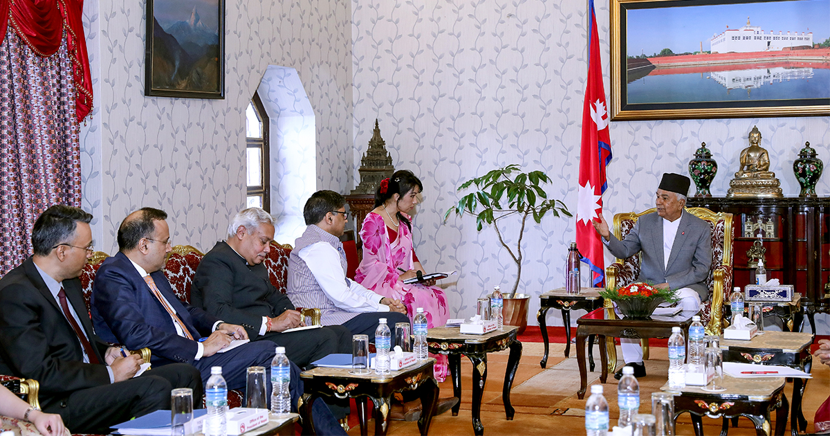काठमाडौँ, २७ साउनः राष्ट्रपति रामचन्द्र पौडेलसँग भारतीय विदेश सचिव विक्रम मिस्रीले शिष्टाचार भेटवार्ता गर्नुभएको छ । राष्ट्रपति भवन शीतल निवासमा आज भएको सो भेटमा द्विपक्षीय आपसीहित र सम्बन्धका विविध विषयमा कुराकानी भएको राष्ट्रपति कार्यालयले जनाएको छ ।