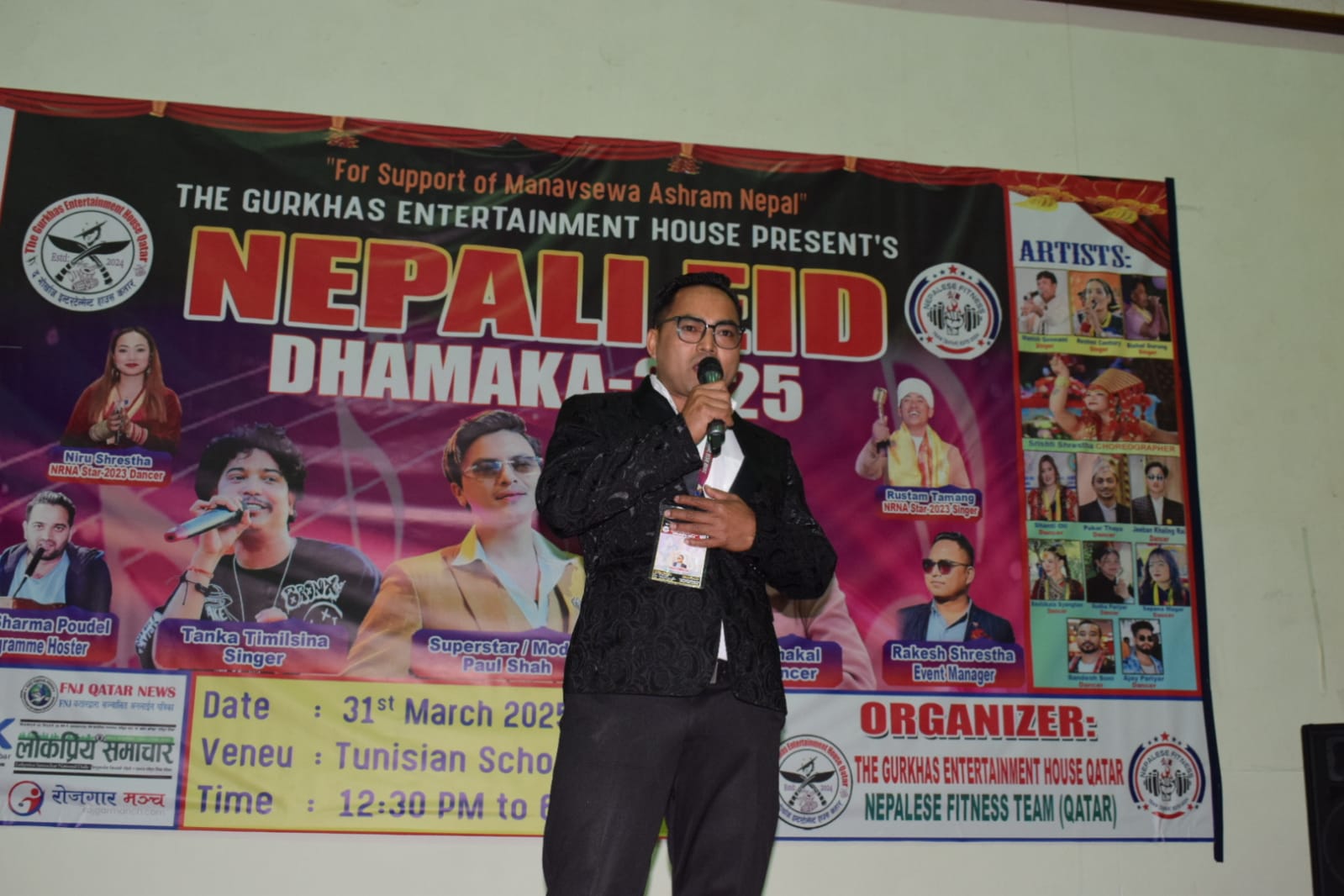 कार्यक्रमका ईभेन्ट म्यानेजर राकेश श्रेष्ठको सभापतित्व, नेपाली राजदूतावास कतारका प्रथम सचिब कृष्ण कुमार सुवेदीको प्रमुख आतिथ्यतामा, एनआरएनए एनसीसी कतारका अध्यक्ष रमेश भट्ट लगायतको उपस्थितिमा , सुपर स्टार नायक पल शाह सङ्गै गायक टंक तिमिल्सिना र मोडल तथा डान्सर स्मारिका ढकालको विशेष साङ्गितिक प्रस्तुतिमा “नेपाली ईद धमाका - २०२५ भब्य रुपमा सम्पन्न भएको हो ।