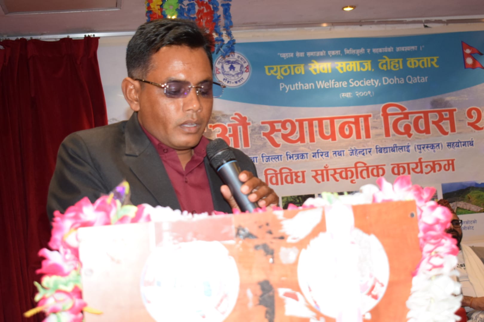 कार्यक्रममा आफ्नो मन्तव्य राख्दै प्रमुख अतिथि पन्थीले कतारदेखी गृह जिल्ला प्युठान सम्म सामाजिक कार्यमा सक्रिय रहेको प्युठान सेवा समाज कतारले गरेका कार्यहरुको प्रशंसा गरेका थिए ।