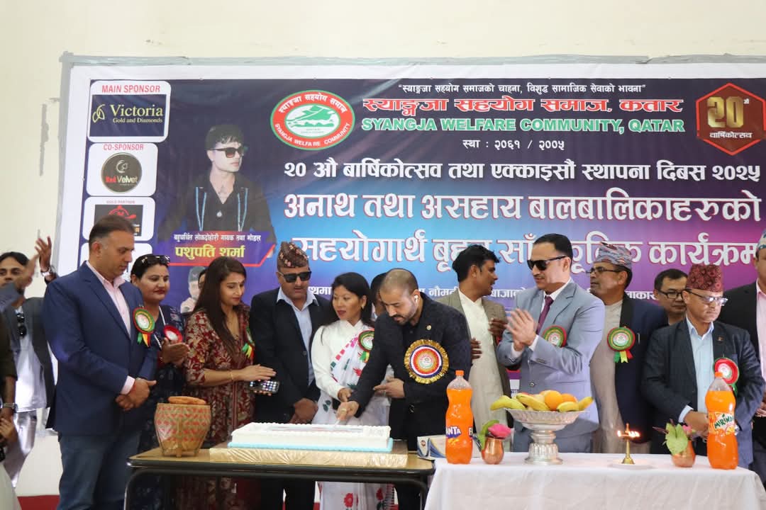 दोहा, : स्याङ्जा सहयोग समाजको चाहना विशुद्ध सामाजिक सेवाको भावना" कतारमा सामाजिक सेवाको भावनालाई शिरोधार्य गर्दै स्थापित स्याङ्जा सहयोग समाज कतारले आफ्नो २० औं वार्षिकोत्सव तथा २१ औं स्थापना दिवसको अवसरमा विशेष सांस्कृतिक कार्यक्रम सम्पन्न गरेको छ ।