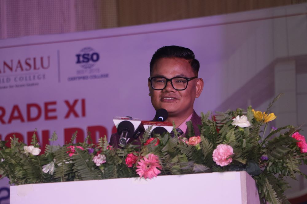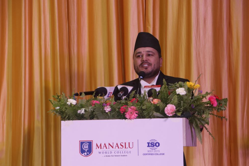कलेज प्रमुख राजन श्रेष्ठले विद्यार्थीहरूलाई आत्मबल र आत्मविश्वासको साथ अघि बढ्न सुझाव दिए।मनास्लु टिमको एकताले बनेको संस्था भएको हुँदा यसको यात्रा लामो रहेको उनको भनाई थियो। जिपिएले मात्रै व्यक्तिको भविष्य निर्धारण गर्न नसक्ने हुँदा जिपिएले मात्तिने र आत्तिने गर्न नहुने उनले बताए। मनास्लुले आफ्ना विद्यार्थी सँग भएका क्षमतालाई विकास गरेर उसको करियर बनाउन मद्दत गर्ने उल्लेख गरेका श्रेष्ठले विद्यार्थीलाई कुनै दिन आफ्नो रोजाई सही रहेछ भनेर गर्व गर्ने वातावरण बनाउने प्रतिबद्धता व्यक्त गर्दै विद्यार्थीको क्षमतालाई निखार्दै अगाडि बनाउने मनास्लुको उद्देश्य स्पष्ट पारेका थिए ।