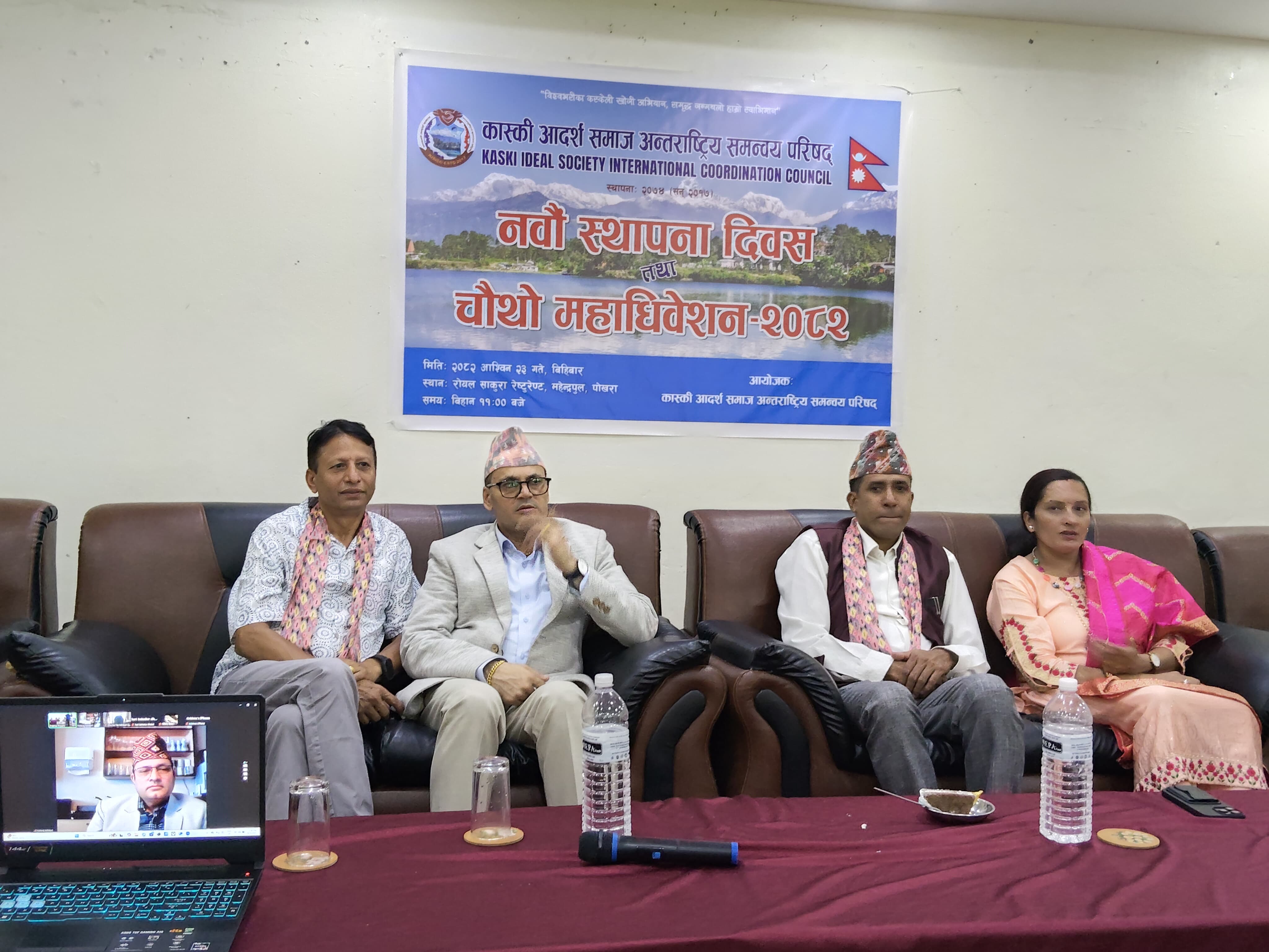 कास्की आदर्श समाज अन्तर्राष्ट्रिय समन्वय परिषद्को चौंथो महाधिवेशन कास्की जिल्लाको मुटु पोखराको महेन्द्रपुलमा अवस्थित रोयल साकुरा रेस्टुरेन्ट एण्ड बारको सभाहलमा एक भब्य समारोह बिच सम्पन्न भएको हो ।