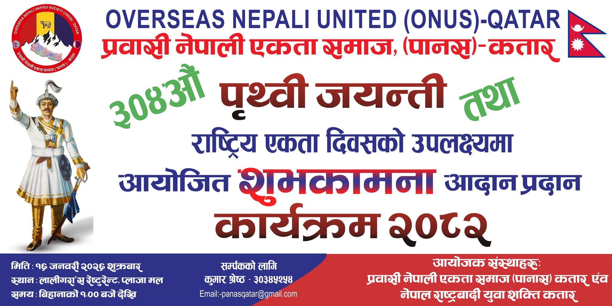 आयोजक: प्रवासी नेपाली एकता समाज (पानस) र नेपाल राष्ट्रवादी युवा शक्ति, कतार