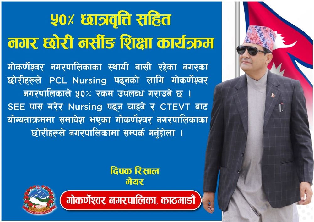 गोकर्णेश्वर नगरप्रमुख रिसालद्वारा PCL नर्सिङ पढ्ने छोरीहरुलाई पचास प्रतिशत छात्रवृत्ति दिने