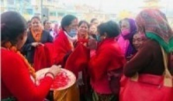 एकल महिलालाई रातो टिका र पछ्यौरी